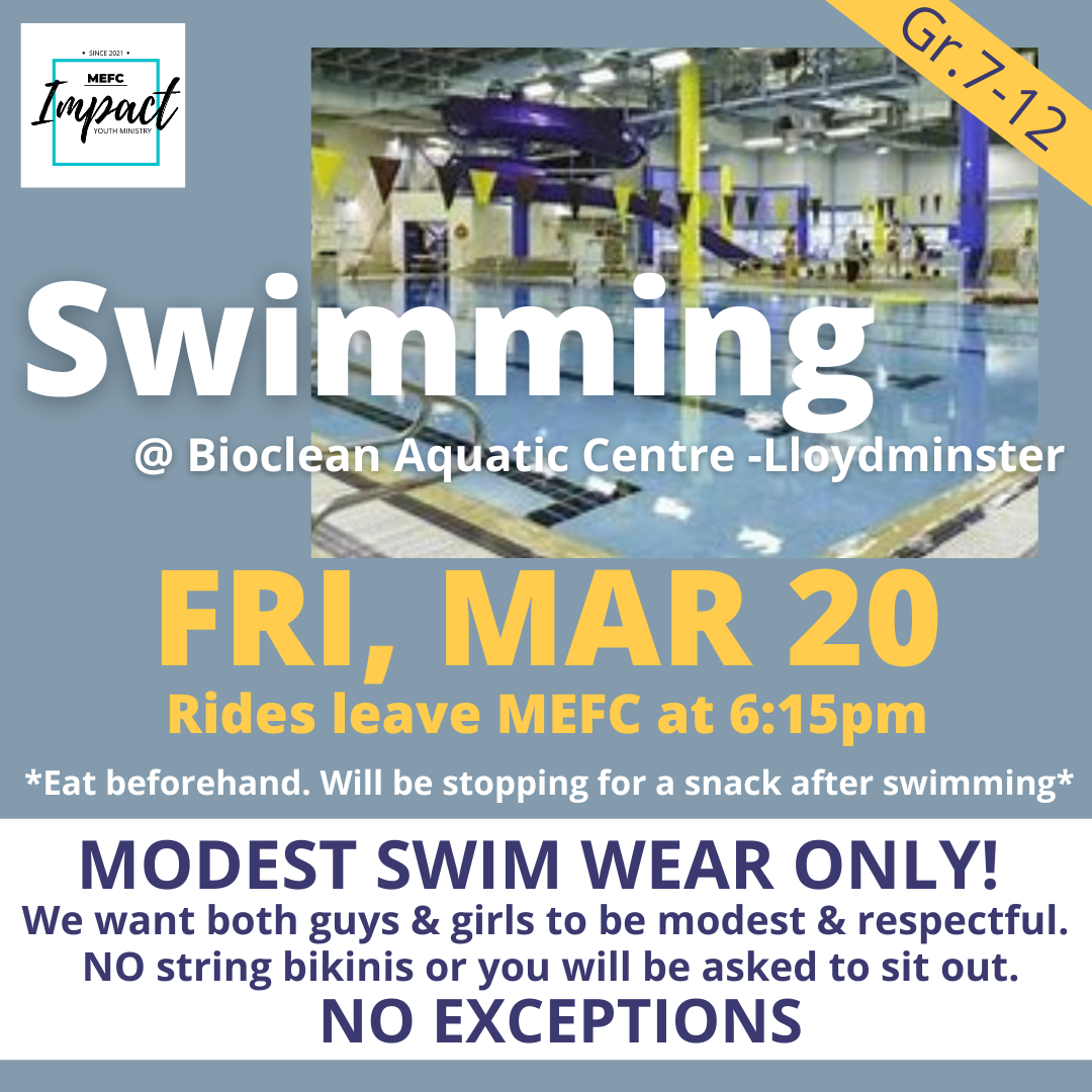 Mar 20 Fri March 20, 2026 from 07:00 PM to 10:00 PM America/Edmonton SWIMMING Bioclean Aquatic Centre - Lloydminster
