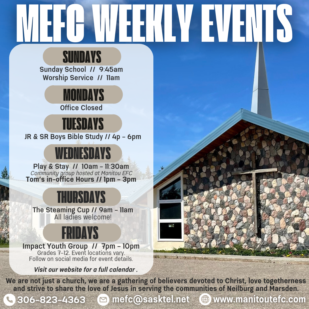 We know there are other churches you could have visited, but we are so glad you chose ours! We are not just a church, we are a gathering of believers devoted to Christ, love togetherness and strive to share the love of Jesus in serving the communities of Neilburg and Marsden. Come visit us on Sundays or during the week at one of our weekly ministries. Hope to see you soon!